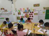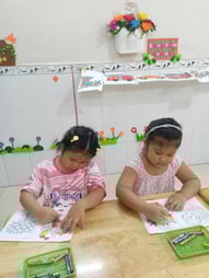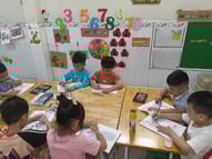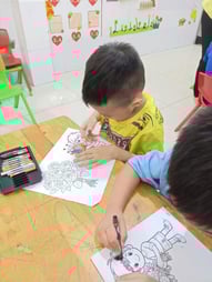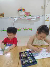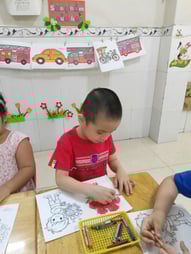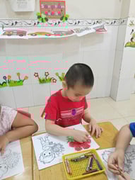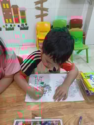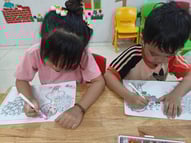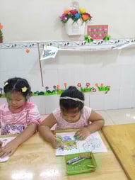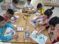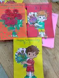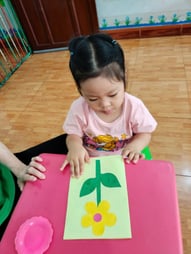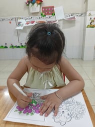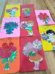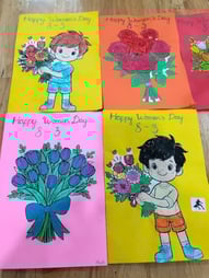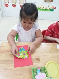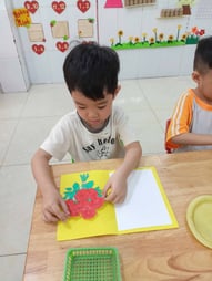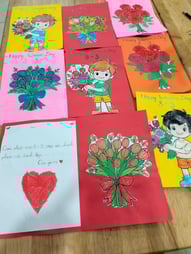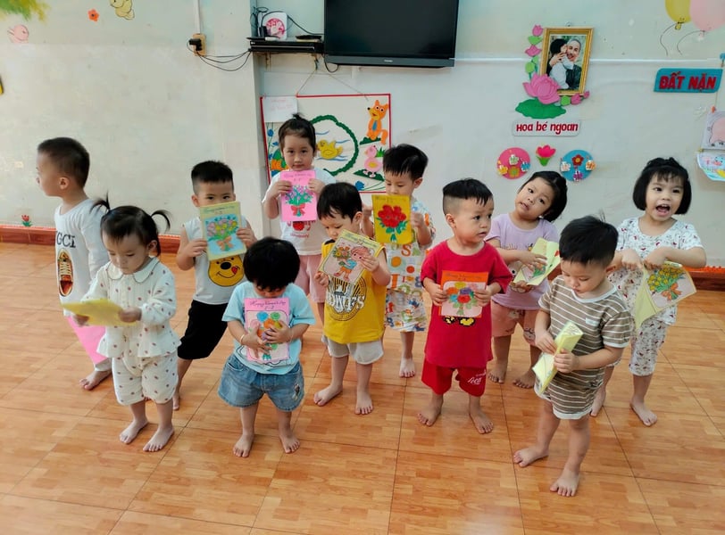 Hình ảnh các bé tô tranh, làm thiệp tặng bà, tặng mẹ, tặng cô ngày 8-3 tại trường Mầm Non 1-6