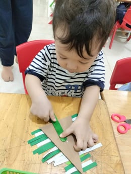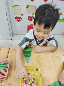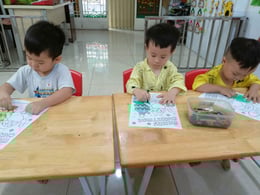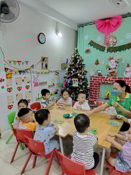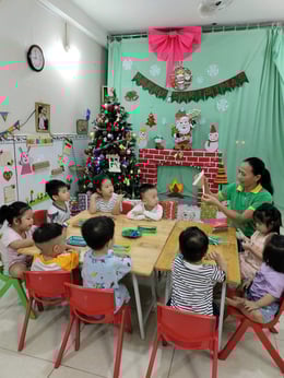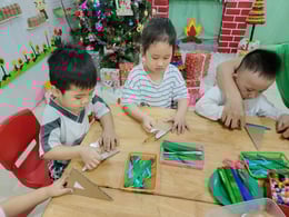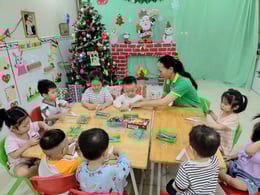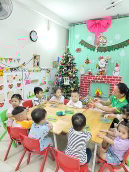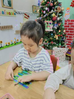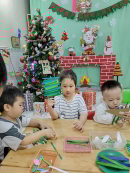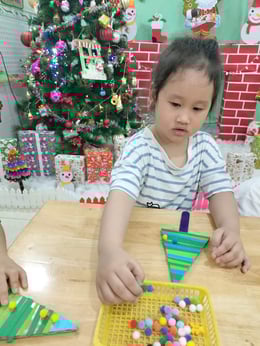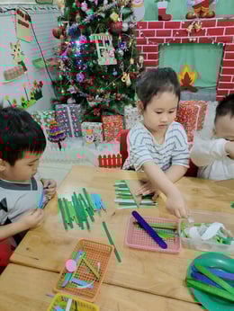 Hình ảnh các bé tại trường Mầm Non 1-6 làm cây thông Noel và tô tranh mừng Giáng Sinh